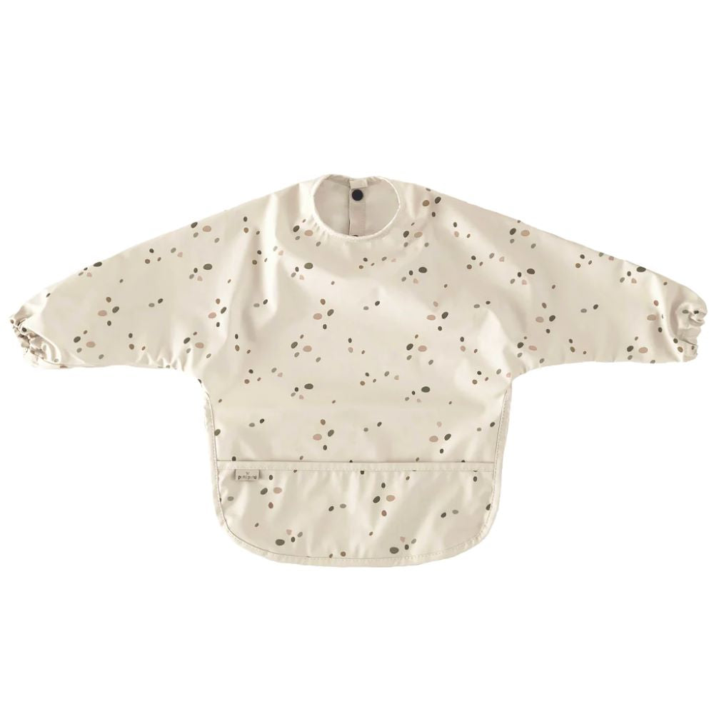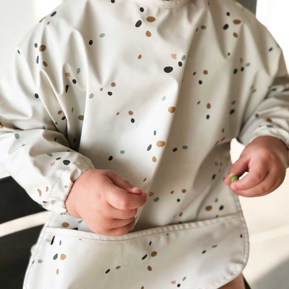 Um babate prático e confortável com mangas que protegerá a roupa das crianças durante a primeira refeição ou durante as atividades criativas.