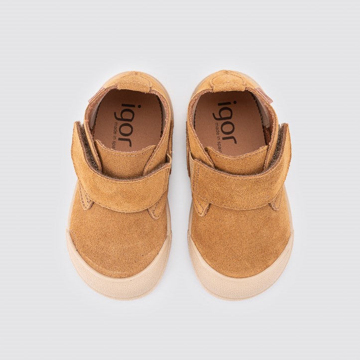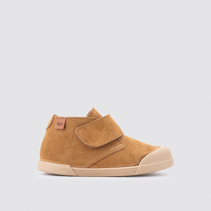 Botas respeitadoras da marca Igor, em camurça no exterior e couro no interior. Com ponteira ampla, muito flexíveis, a sola fina e sem desnível e as palmilhas removíveis.
