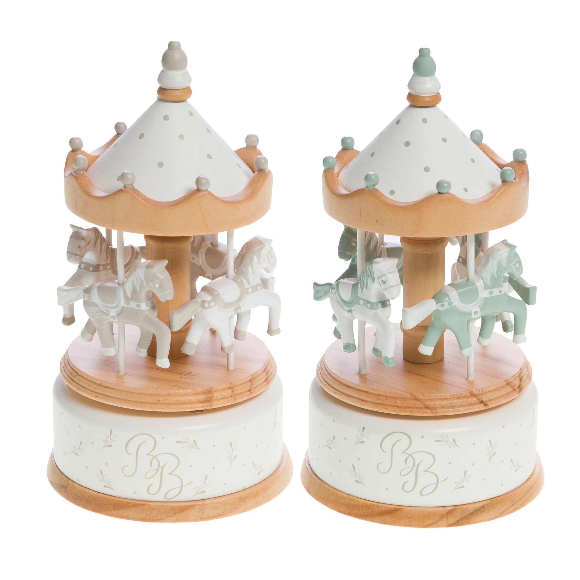 Um detalhe encantador para quartos infantis e espaços de brincadeira. Com dimensões compactas (11 × 11 × 21 cm), este carrossel é perfeito para integrar brinquedos e objetos decorativos, oferecendo um equilíbrio entre charme vintage e qualidade artesanal. 🌟