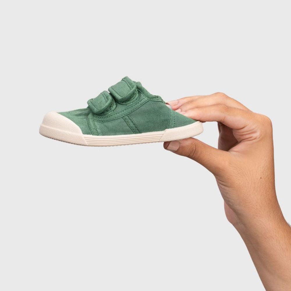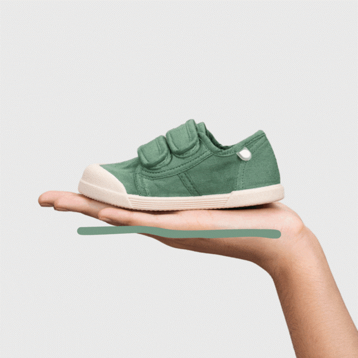 Lona 100% algodão, com duas tiras de fixação touch desenhadas no conceito descalço, queda zero, flexível, macia e com sola removível. Lave em água fria sem palmilha.