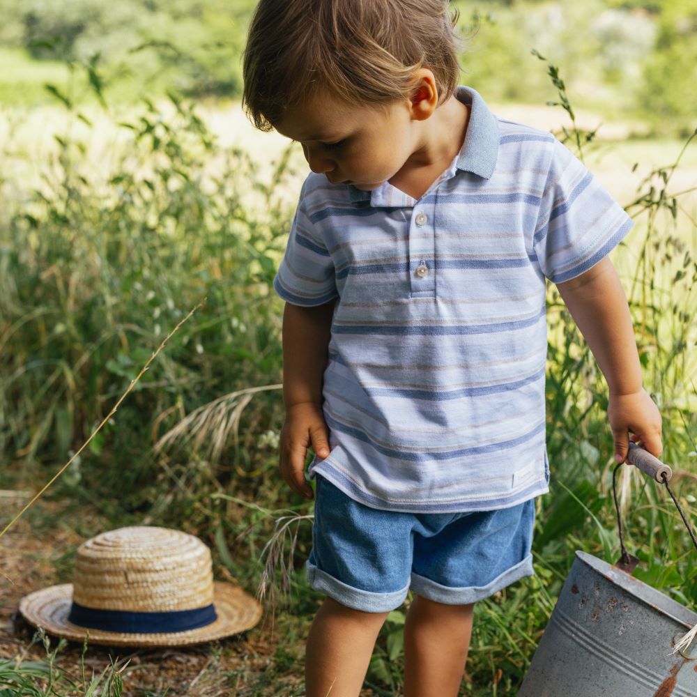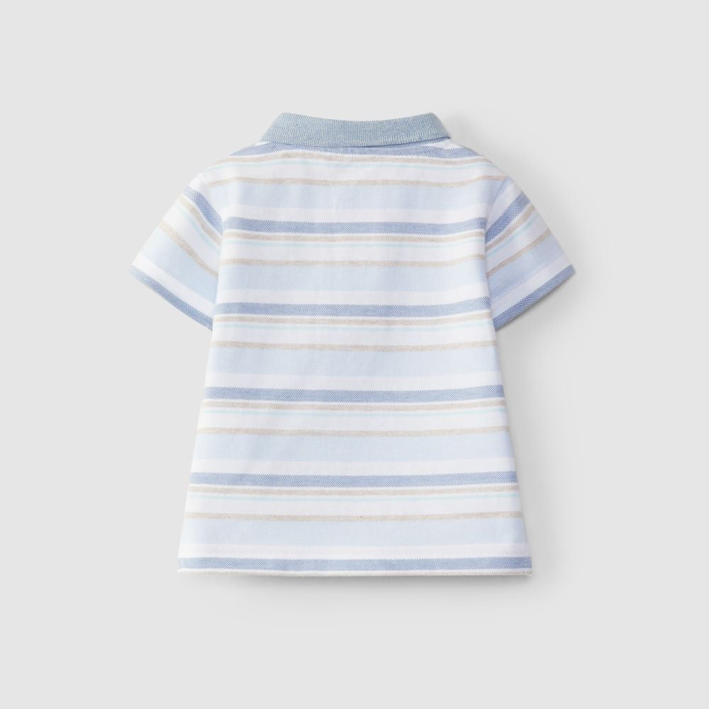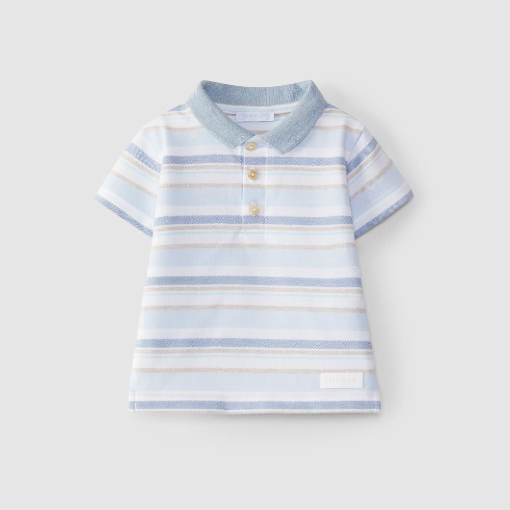 Polo em piqué 100% algodão com estampado de riscas. Aperta com botões Laranjinha na frente.