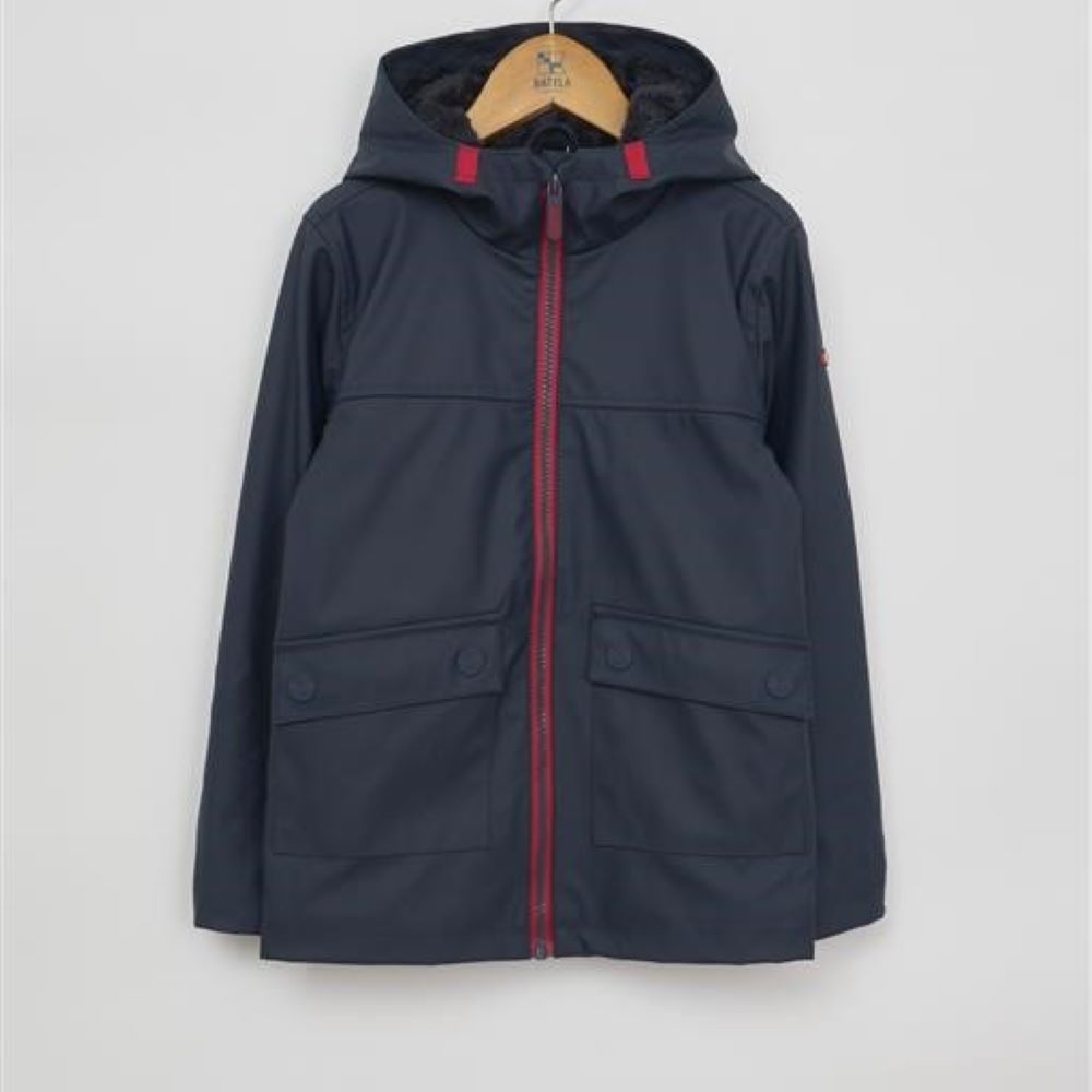 Parka infantil com design náutico clássico, pensado para garantir conforto e isolamento nos dias de chuva e vento. O exterior em poliuretano impermeável assegura proteção eficaz, enquanto o forro interior em pelo suave oferece uma sensação quente e aconchegante mesmo nas temperaturas mais baixas.