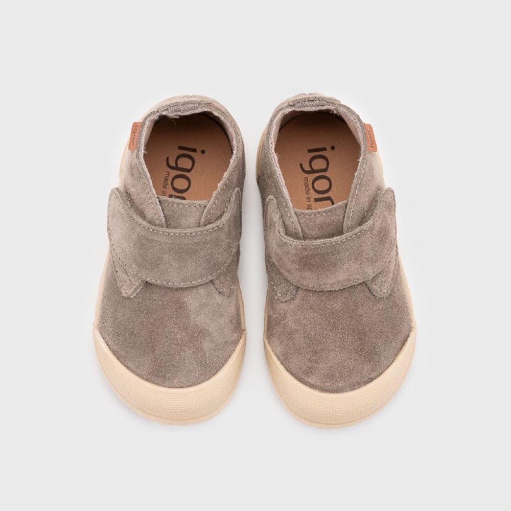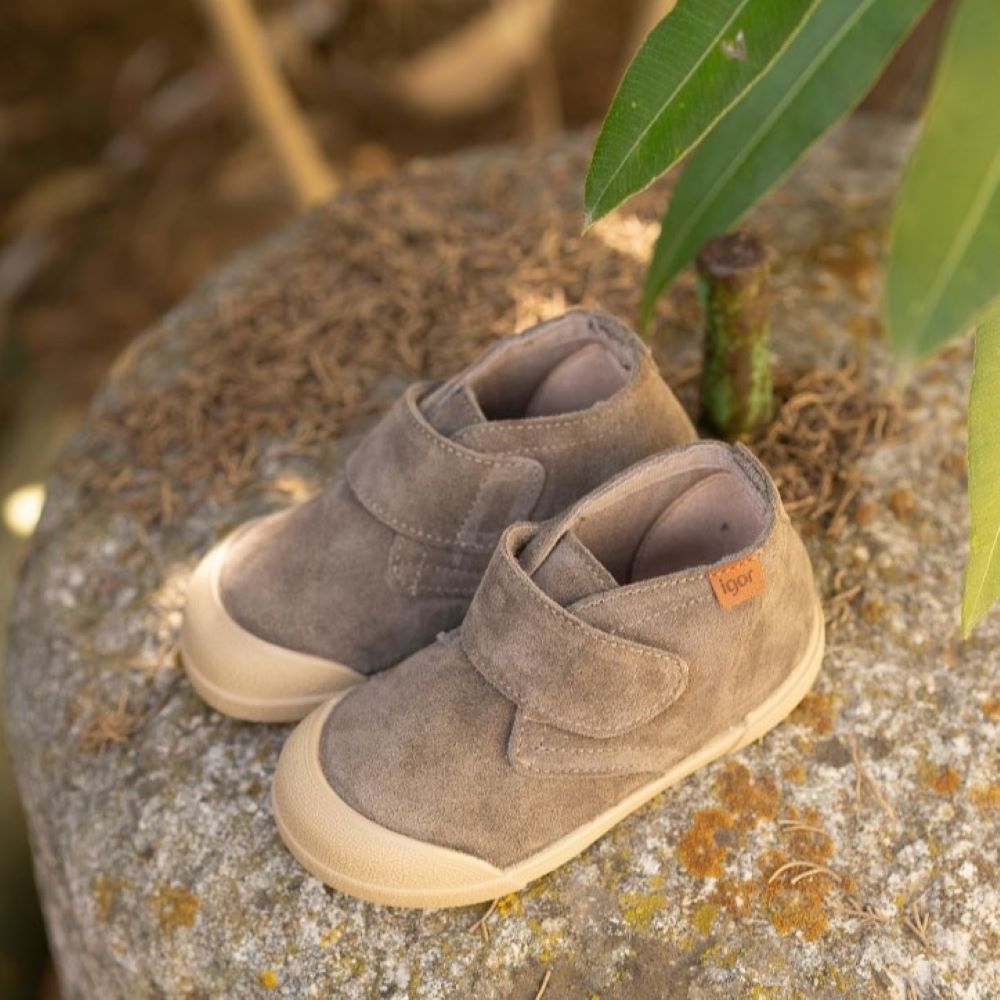 Botas respeitadoras da marca Igor, em camurça no exterior e couro no interior. Com ponteira ampla, muito flexíveis, a sola fina e sem desnível e as palmilhas removíveis.