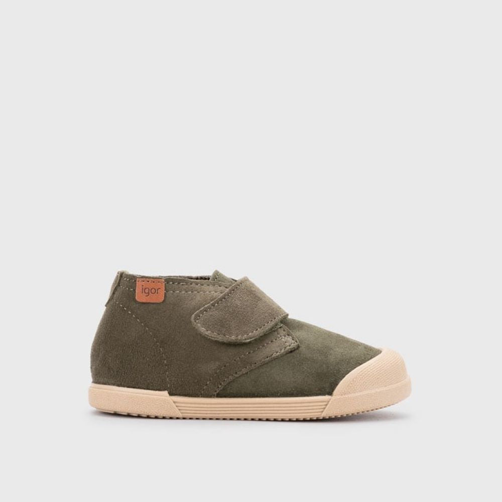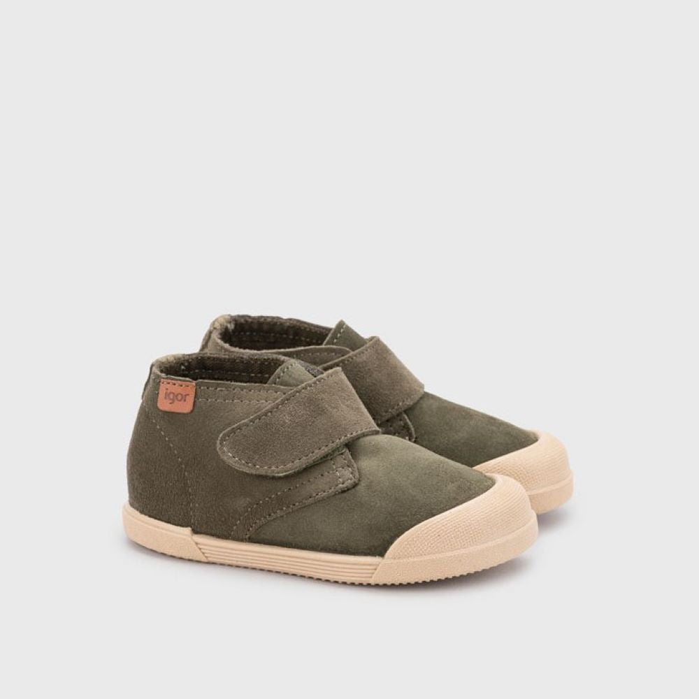 Botas respeitadoras da marca Igor, em camurça no exterior e couro no interior. Com ponteira ampla, muito flexíveis, a sola fina e sem desnível e as palmilhas removíveis.