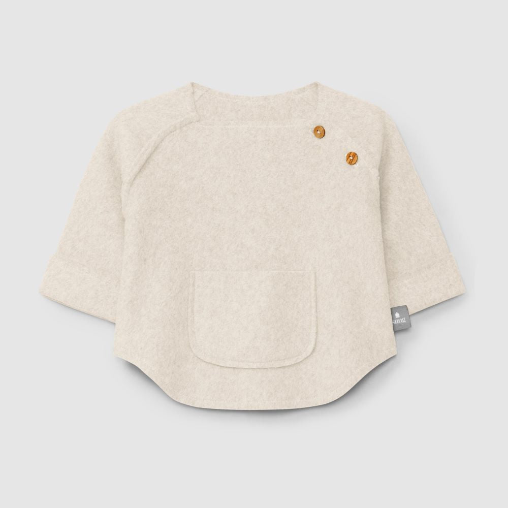 Camisola em malha polar suave e quente 100% algodão orgânico com efeito de costuras exteriores e bolso funcional. Aperta com botões de madeira na frente. Processo de tingimento gots utiliza cerca de 60% menos de água.