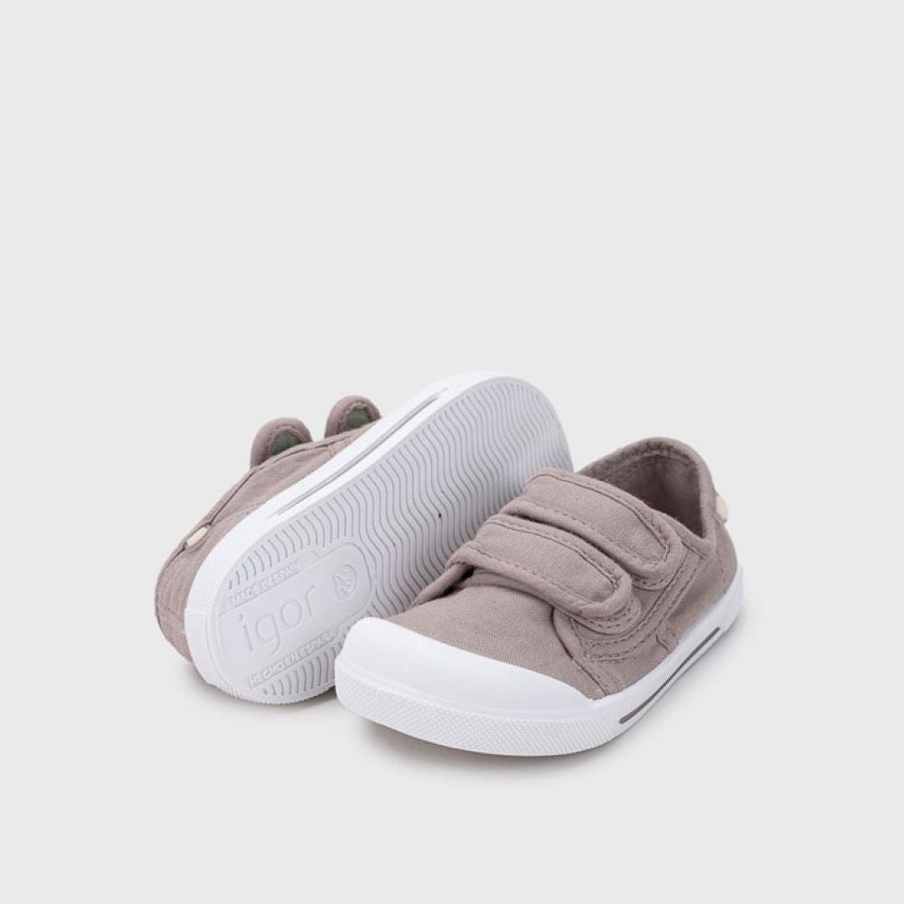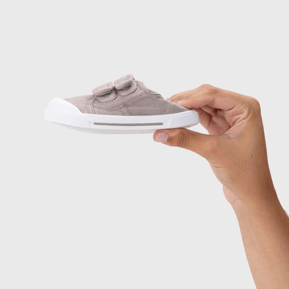 Confeccionada em 100% algodão, apresenta duas tiras de fixação em velcro que garantem um ajuste prático e confortável. Desenhada segundo o conceito barefoot wide, oferece uma ponteira extra larga, sola fina, queda zero e flexibilidade total — promovendo o desenvolvimento natural do pé.