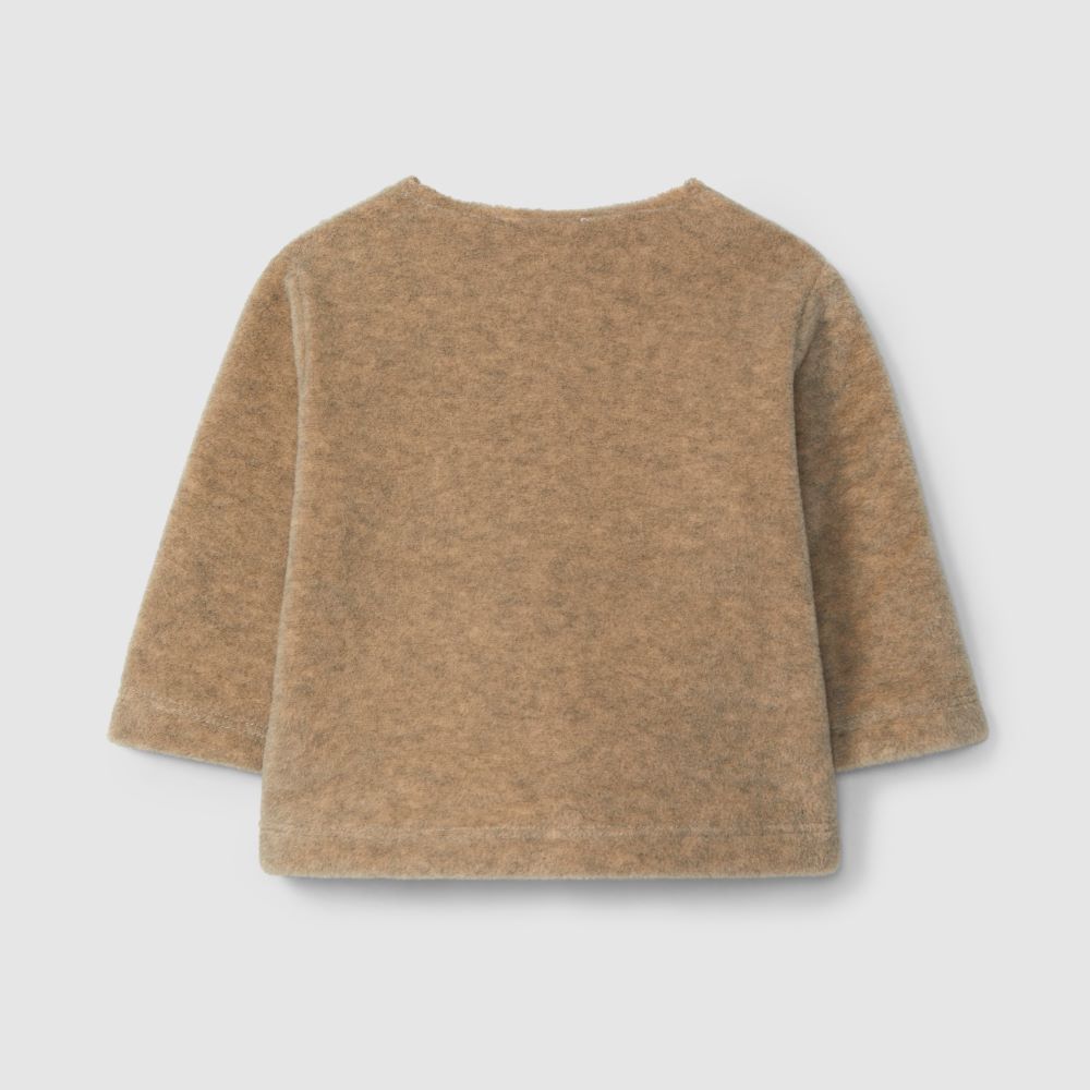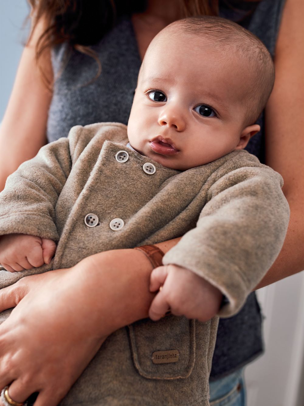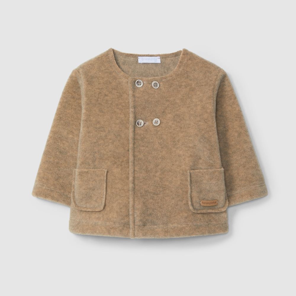 Casaco polar com bolsos funcionais na frente. Aperta em trespasse com botões na frente.