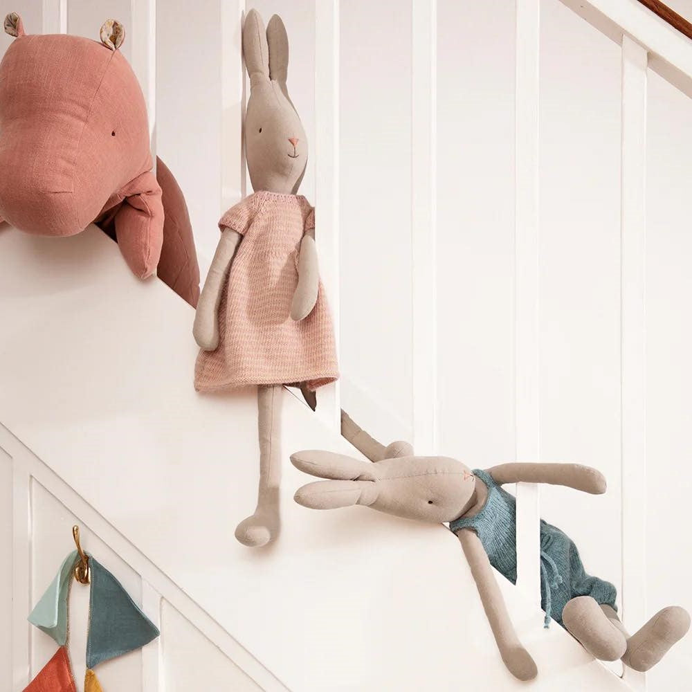 A coleção Bunny & Rabbit é feita de linho natural macio e tecido de algodão - o que proporciona uma aparência e toque encantadores. Este coelho usa um macacão de malha macia.