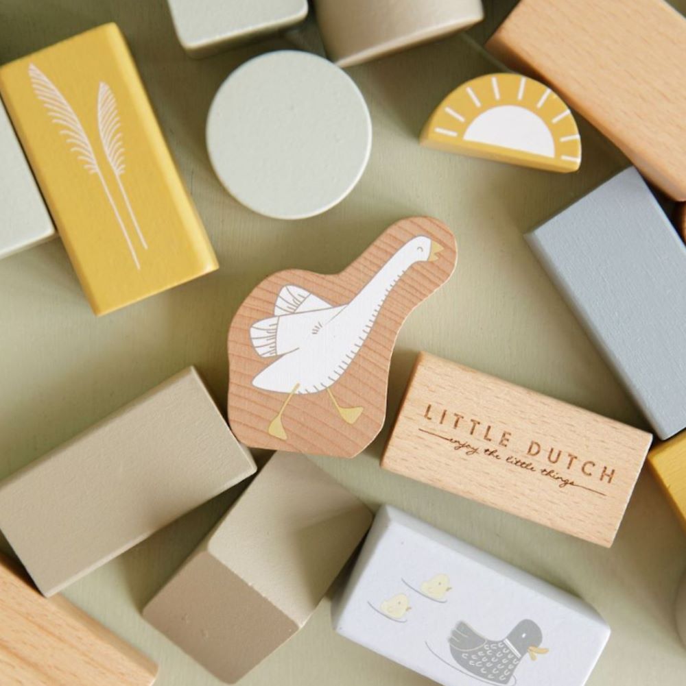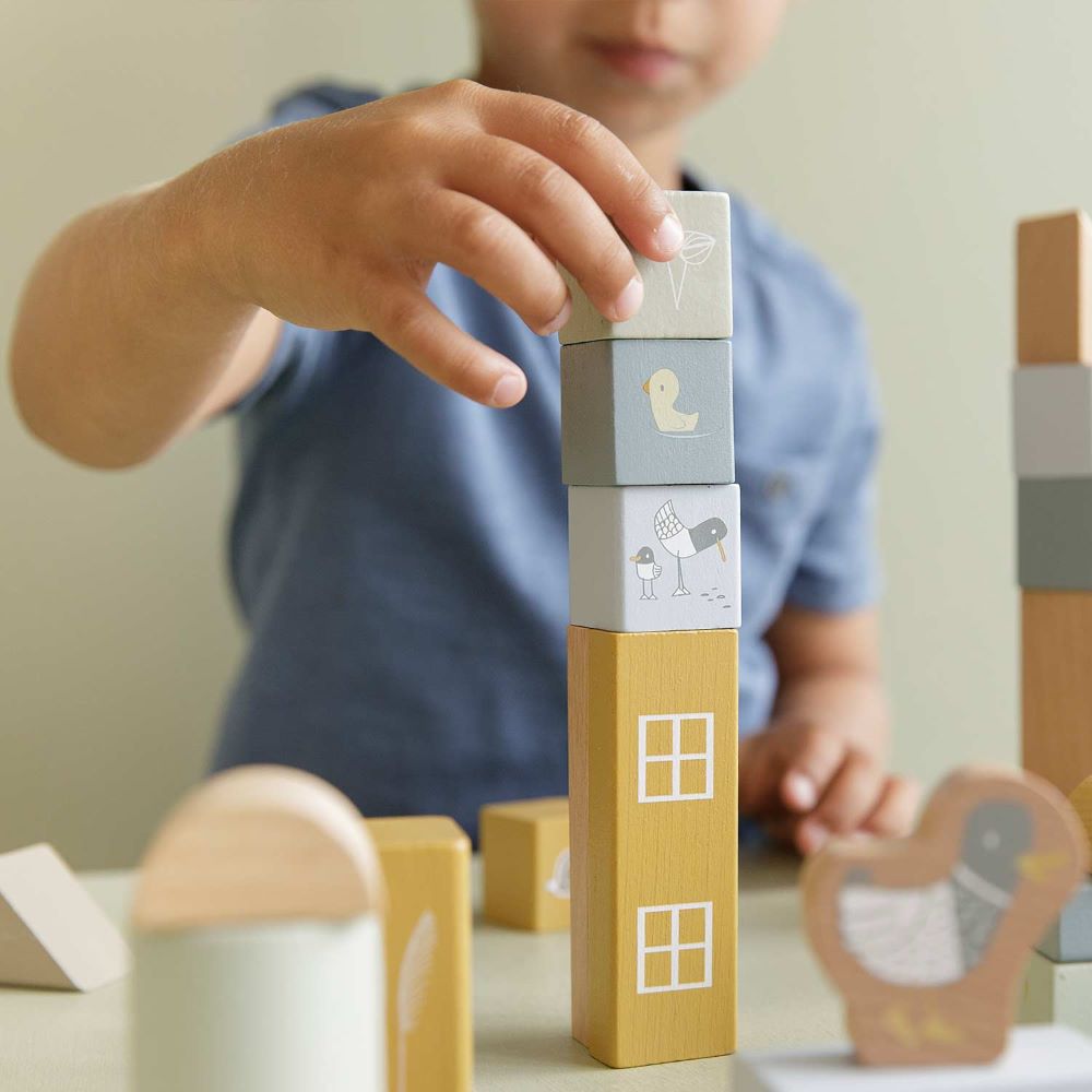 Estes pequenos blocos de madeira vem dentro de um barril de cartão e são essenciais em qualquer quartinho ou sala. O barril contém nada menos que 50 blocos de madeira em belos tons pastel com várias imagens do Ganso e dos seus amiguitos, da coleção Little Goose, da Little Dutch. Empilhem os blocos para construir formas ou torres divertidas. Os blocos podem ser facilmente armazenados no barril que serve de mala de transporte, sendo fáceis de levar para qualquer lugar.