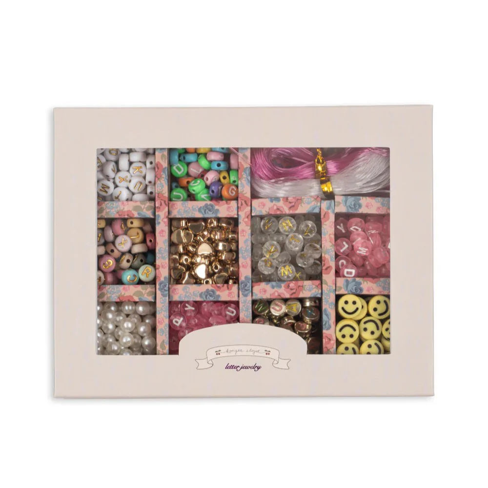 Kit completo de pequenas contas com letras, com uma seleção de 10 opções diferentes para criares as tuas próprias peças.