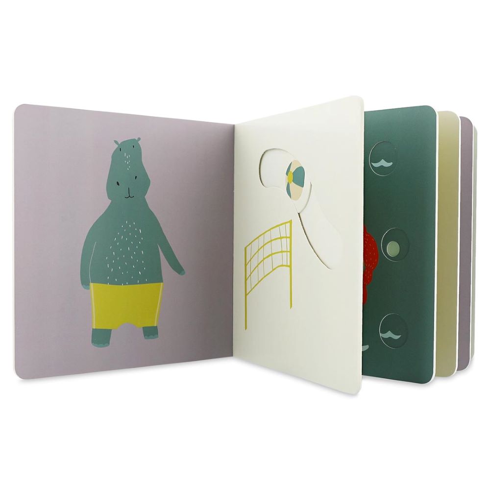 O livro deslizante "Beach" é uma aventura interativa cheia de sol, areia e diversão! As crianças vão adorar deslizar as peças e descobrir o que os animais fazem à beira-mar — construir castelos, nadar nas ondas ou apanhar conchinhas.