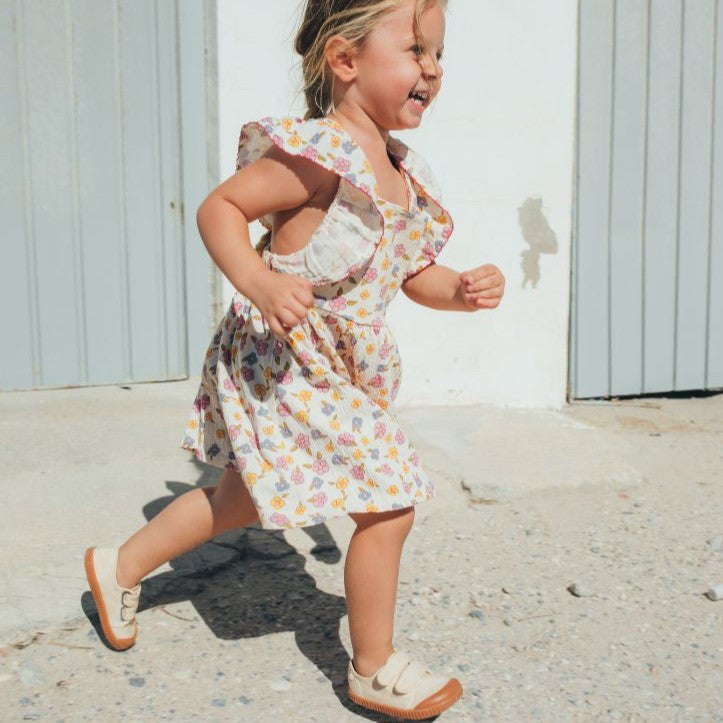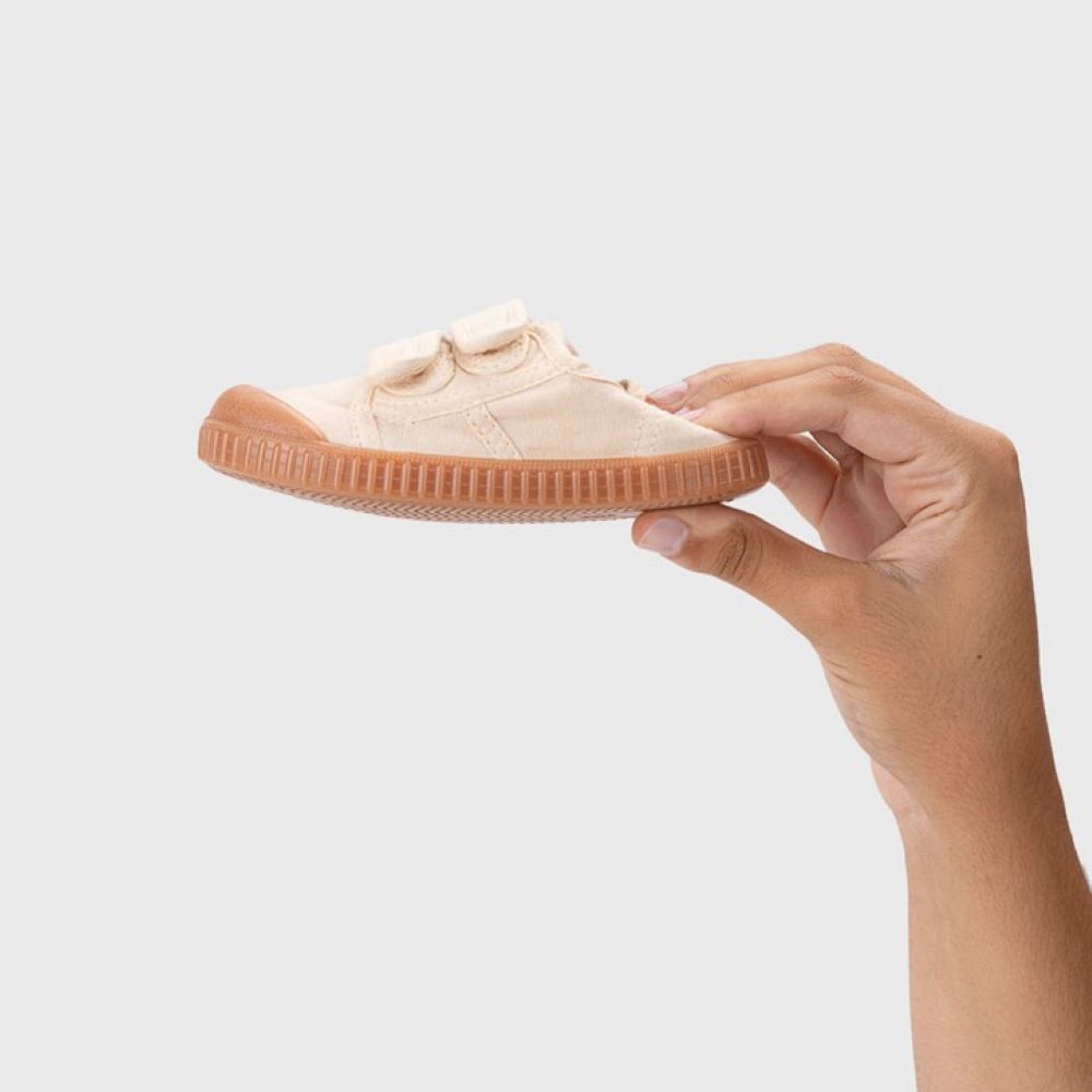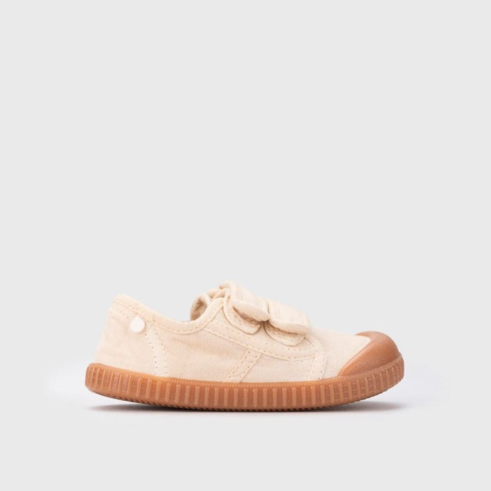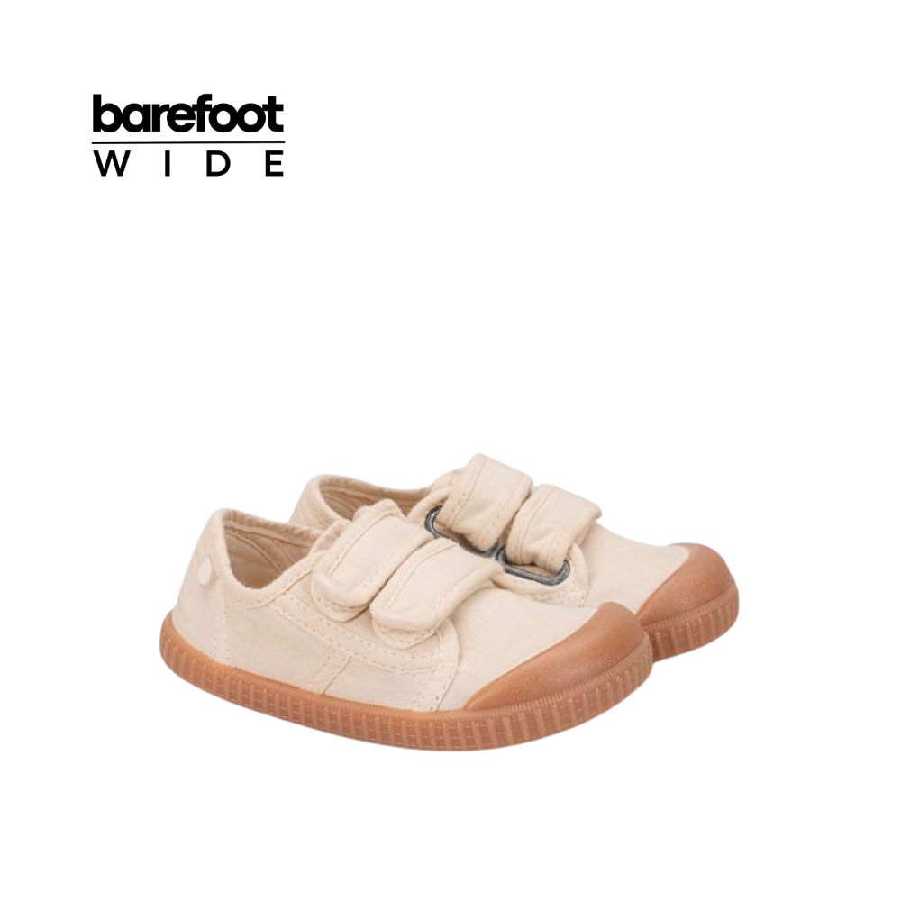 Este modelo da Igor, em lona 100% algodão e com sola caramelo, foi desenhado com base no conceito barefoot wide: ponteira extra larga, zero drop, sola fina e muito flexível. Com fecho duplo aderente, garante ajuste fácil e seguro. A estrutura macia e a palmilha removível fazem desta sapatilha uma excelente opção para pés mais largos que precisam de espaço e conforto para se desenvolverem de forma natural.