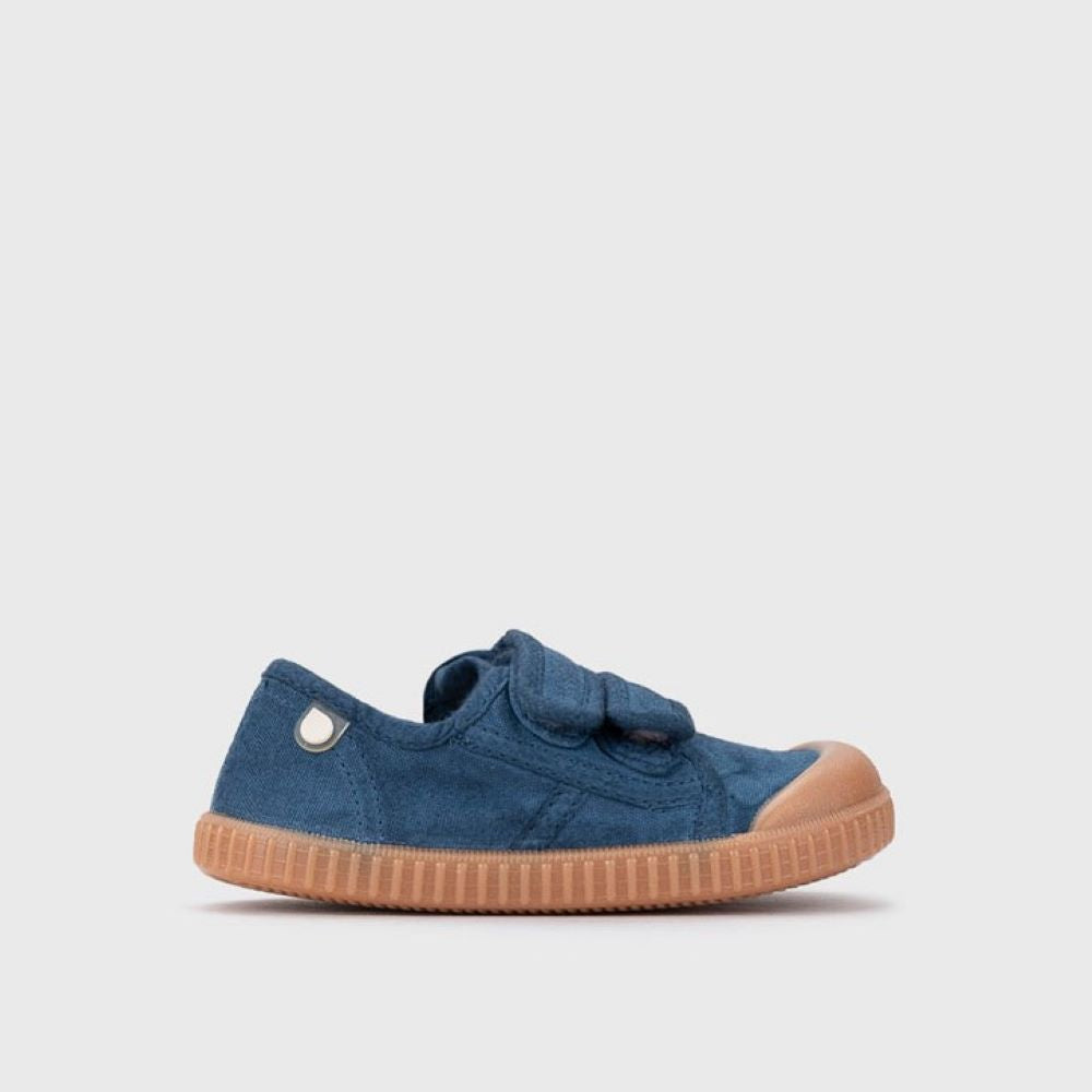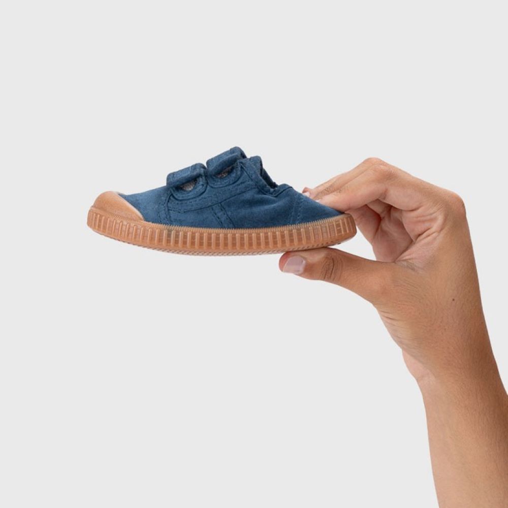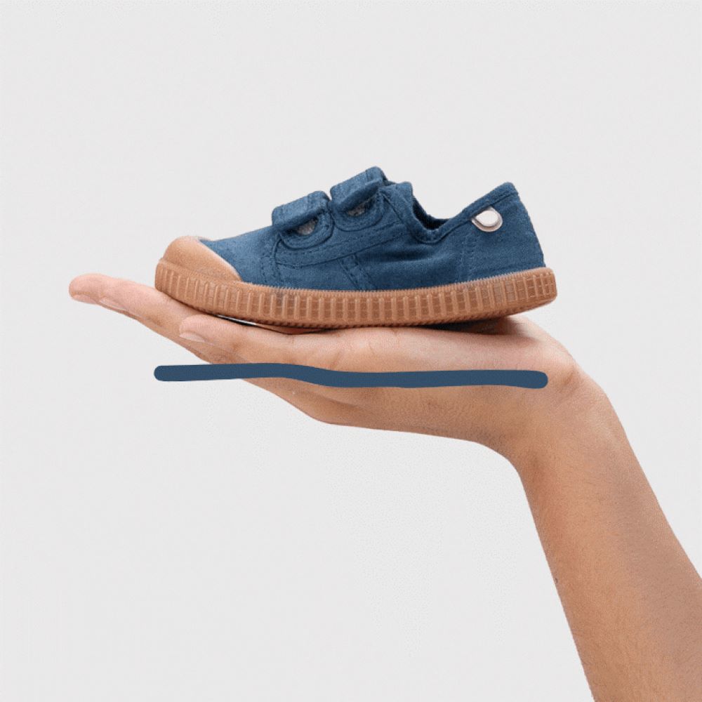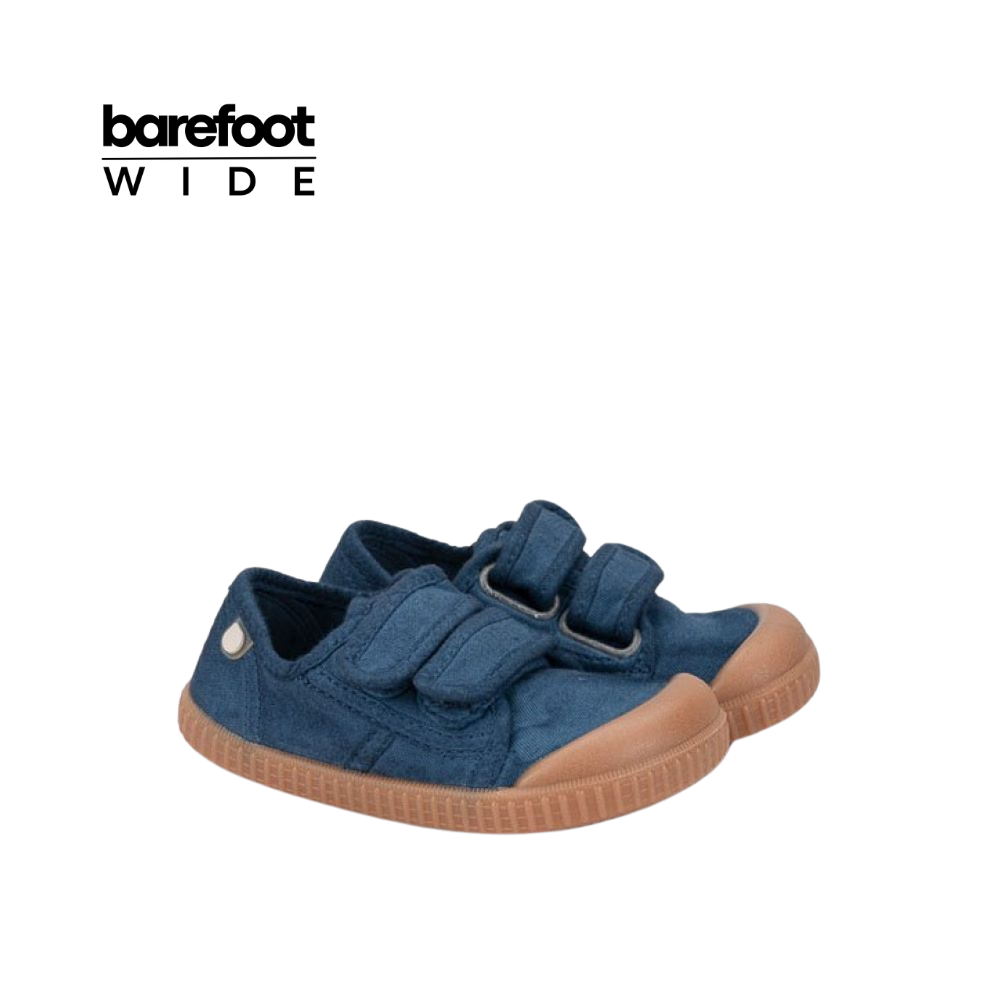 Este modelo da Igor, em lona 100% algodão e com sola caramelo, foi desenhado com base no conceito barefoot wide: ponteira extra larga, zero drop, sola fina e muito flexível. Com fecho duplo aderente, garante ajuste fácil e seguro. A estrutura macia e a palmilha removível fazem desta sapatilha uma excelente opção para pés mais largos que precisam de espaço e conforto para se desenvolverem de forma natural.