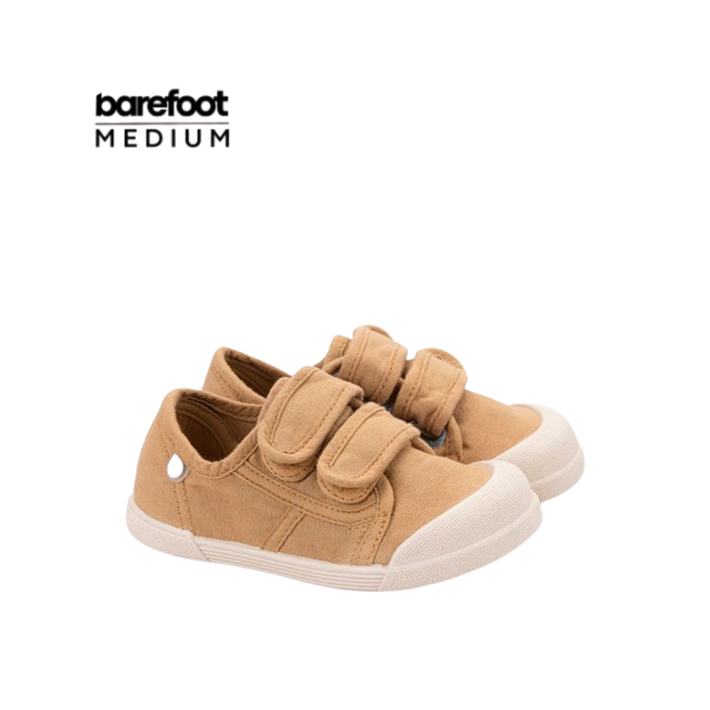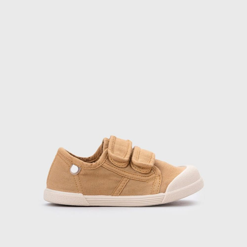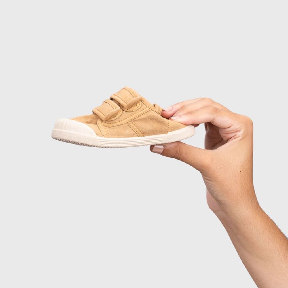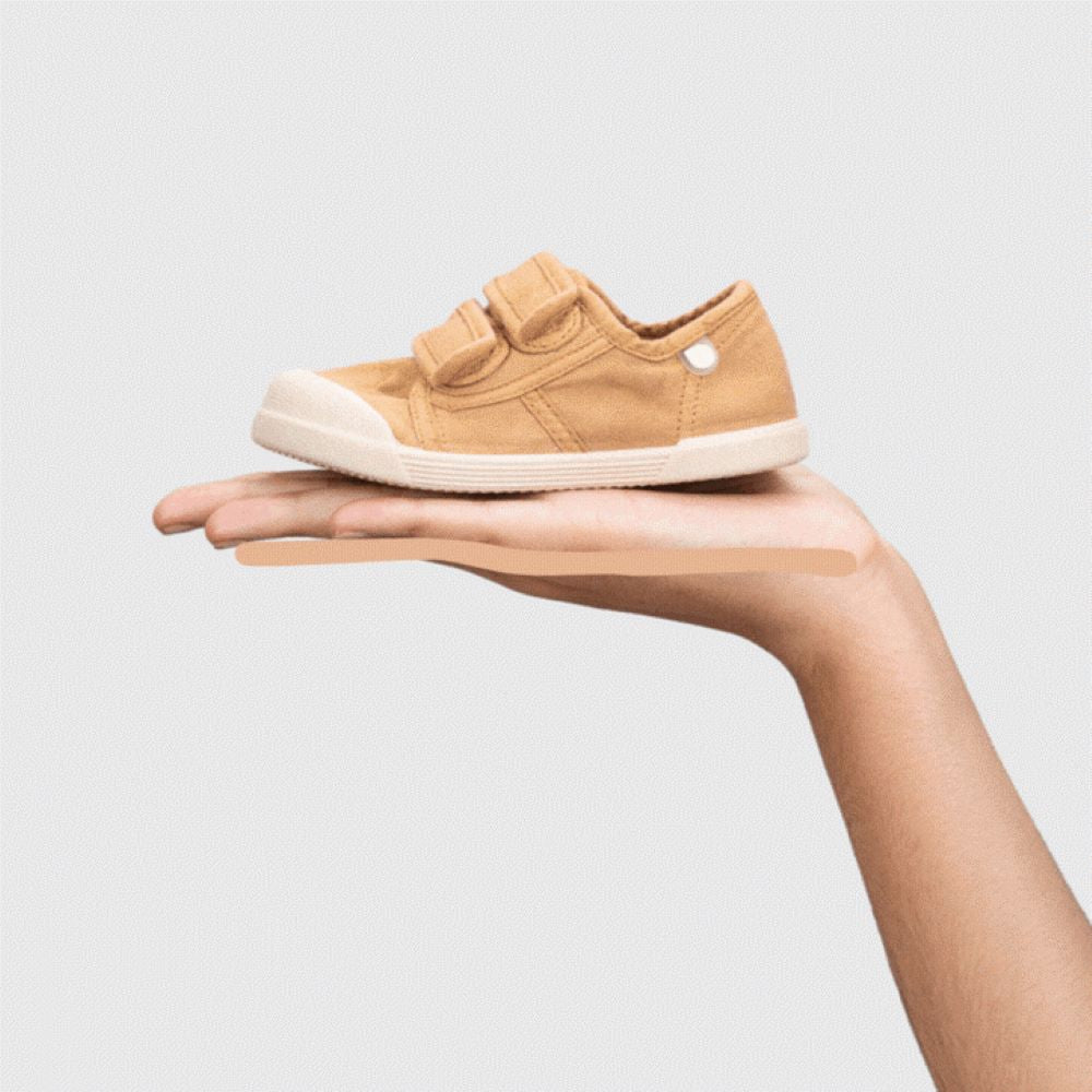 Lona 100% algodão, com duas tiras de fixação touch desenhadas no conceito descalço, queda zero, flexível, macia e com sola removível. Lave em água fria sem palmilha