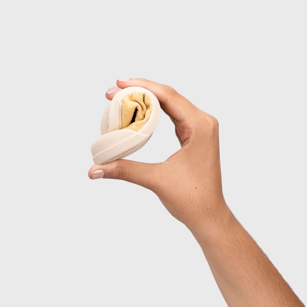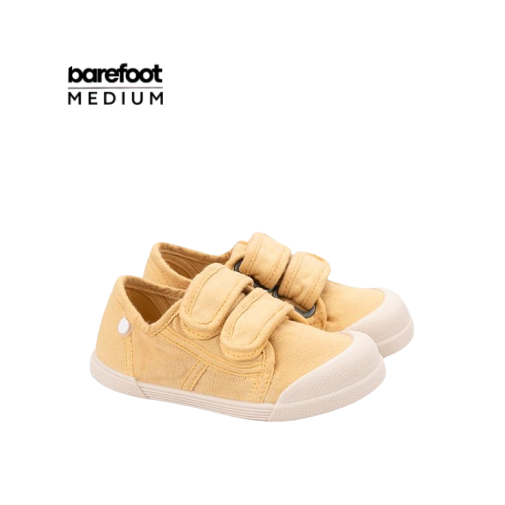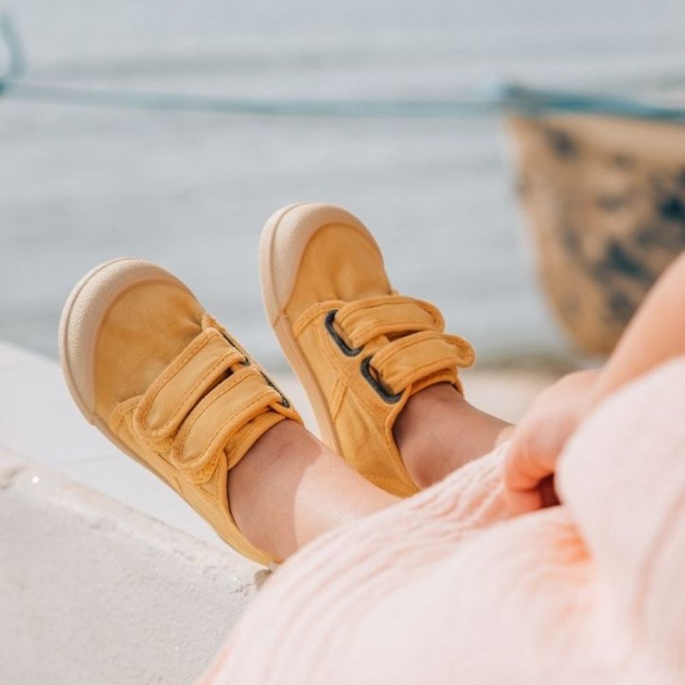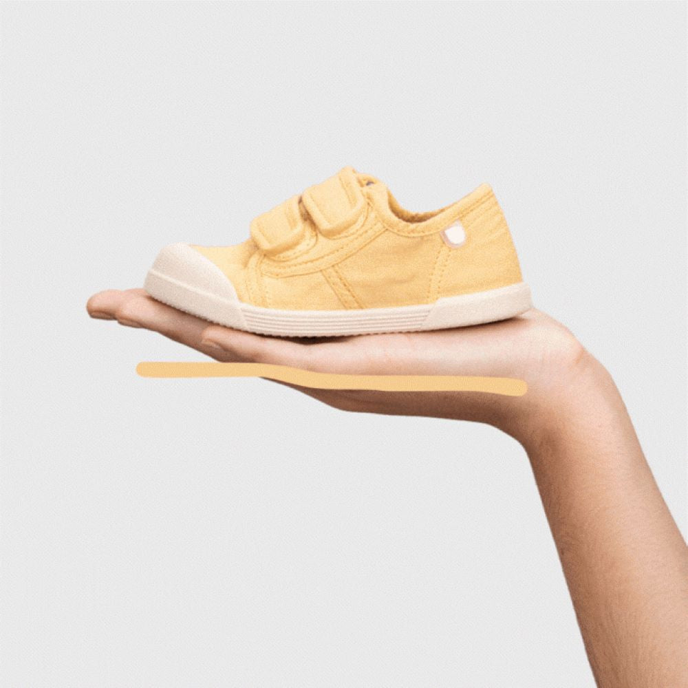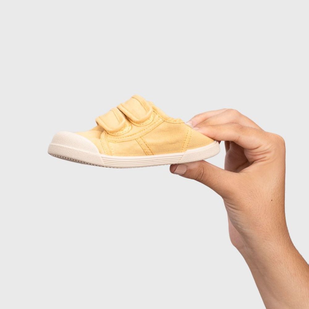 Lona 100% algodão, com duas tiras de fixação touch desenhadas no conceito descalço, queda zero, flexível, macia e com sola removível. Lave em água fria sem palmilha