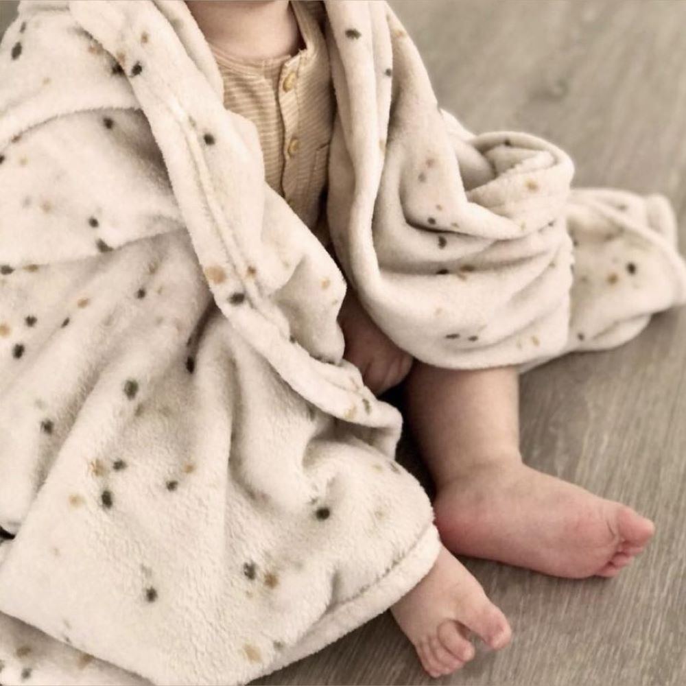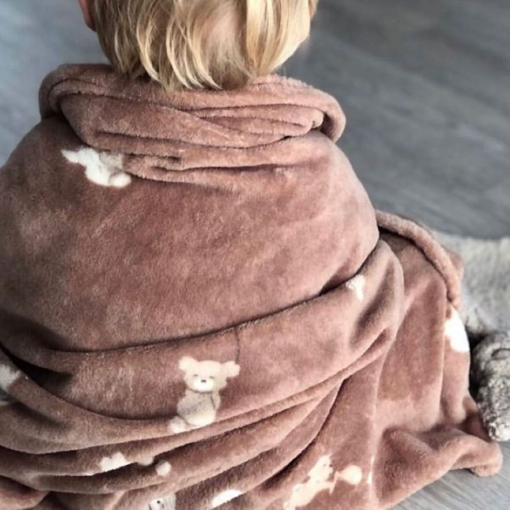 A manta é decorada com ursinhos, pinguins ou pontos que dão todo charme e aconchego.