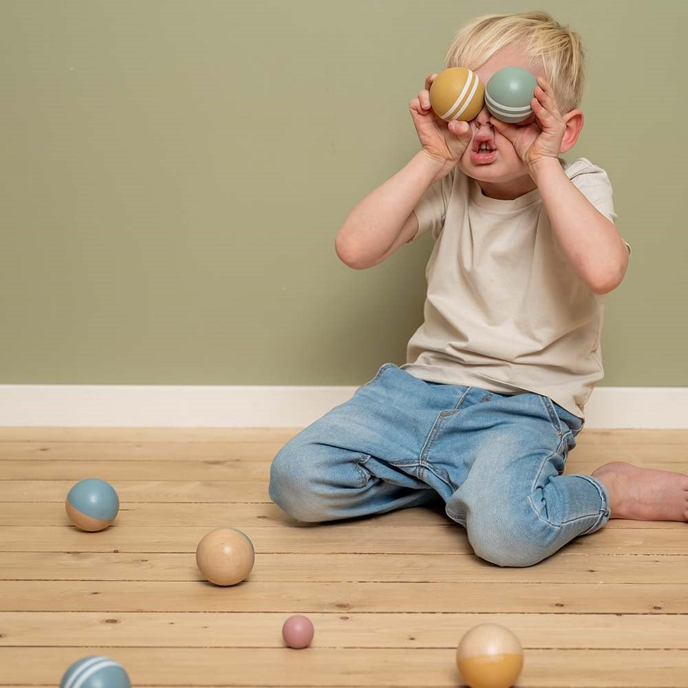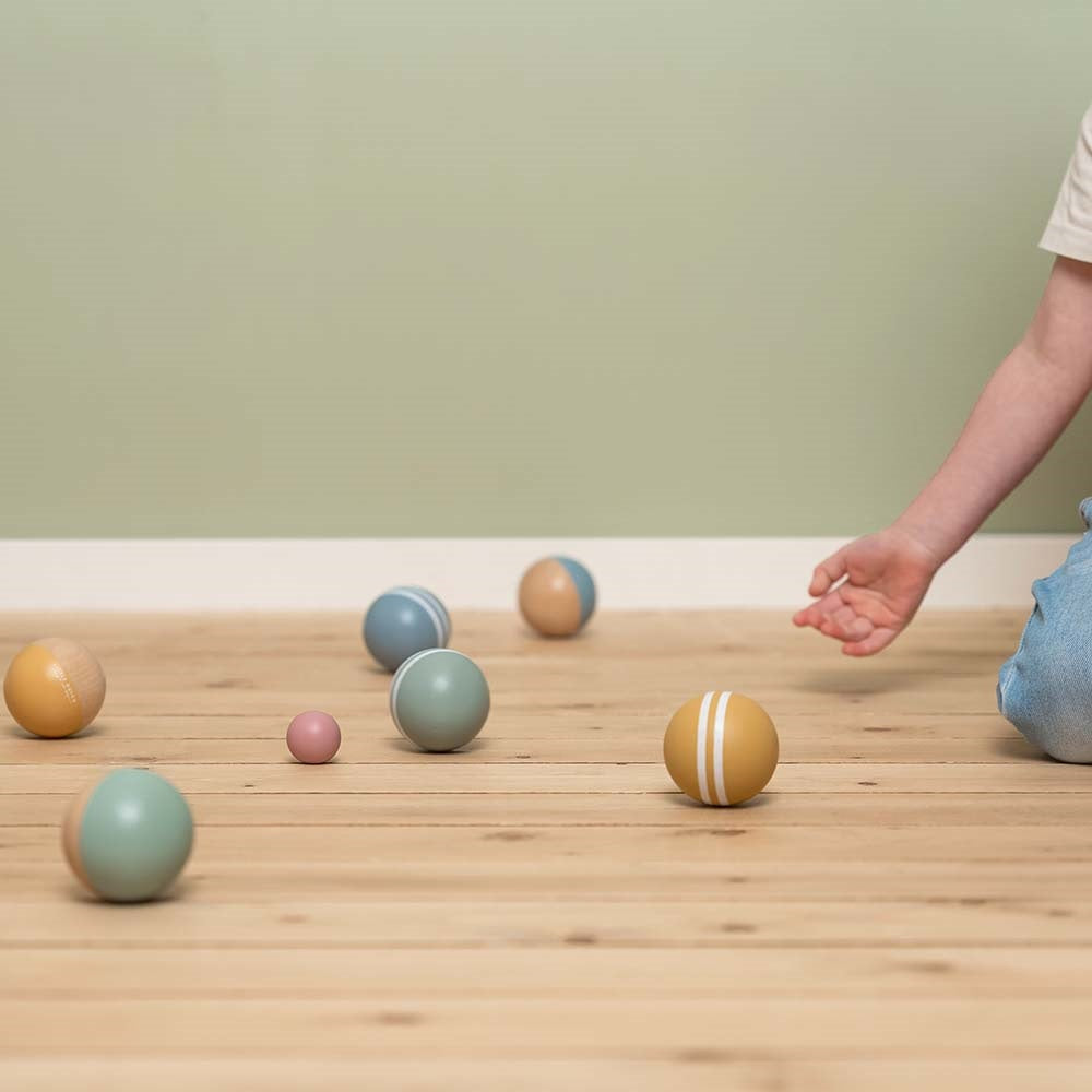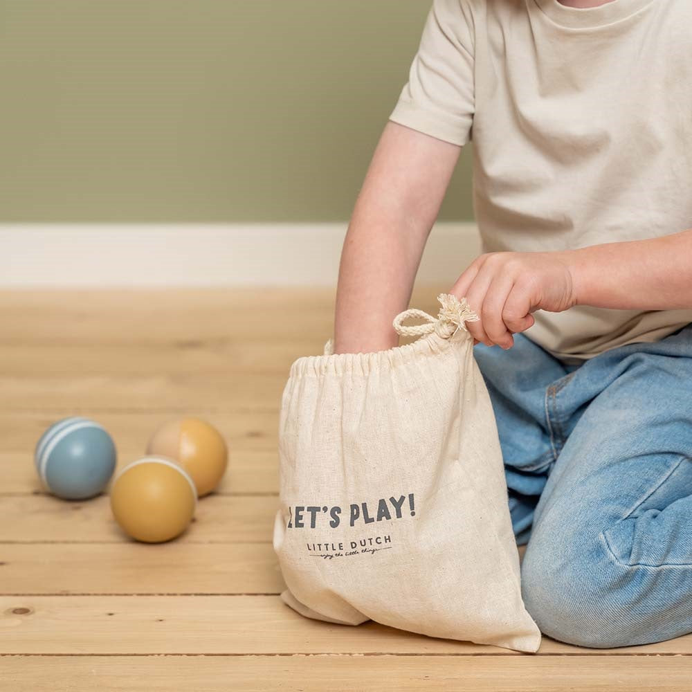 O conjunto da Little Dutch de Petanca em Madeira FSC é o jogo familiar perfeito. O conjunto de madeira é composto por 6 bolas, duas bolas menores e um saco de algodão. Escolha uma cor, jogue a bola e certifique-se de que ela chegue mais perto da bola menor. O jogo estimula a coordenação olho-mão. As crianças brincam e aprendem ao mesmo tempo. E quem sabe, talvez o seu filho acabe sendo o melhor jogador de petanca nas férias!
