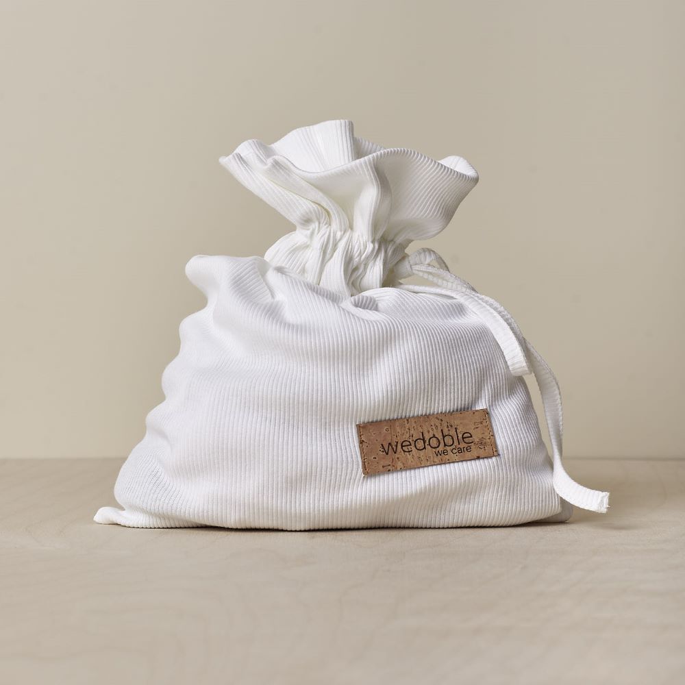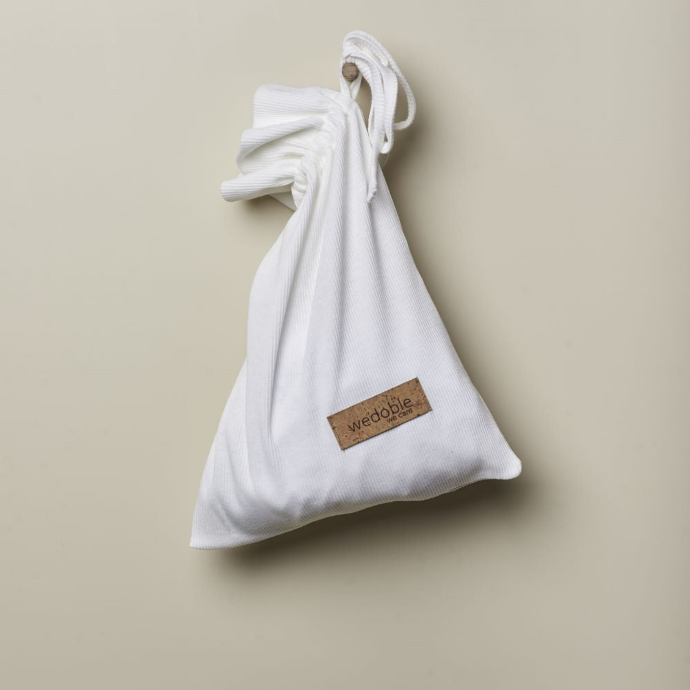 Saco porta mudas de roupa em malha canelada suave de algodão, ideal para guardar as mudas de roupa do seu bebé.
