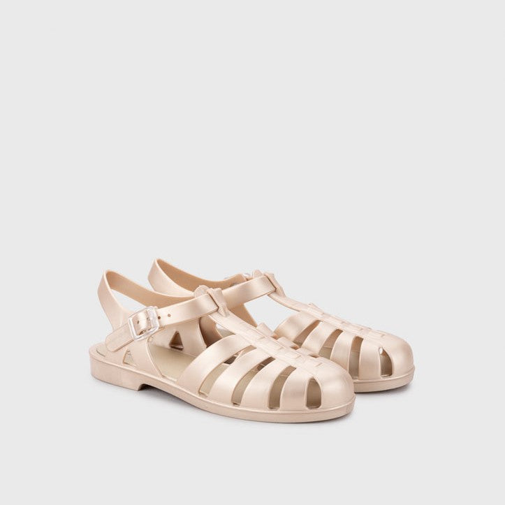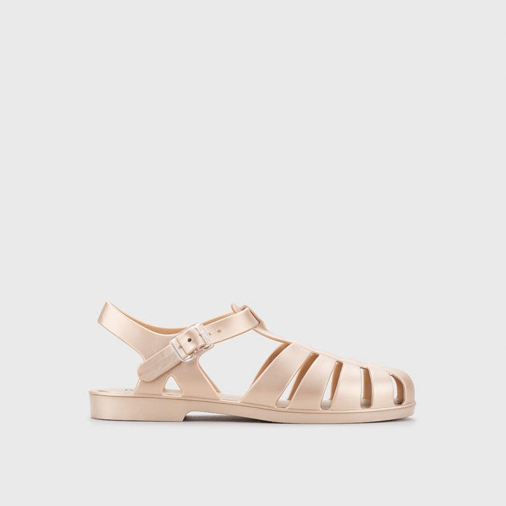 As sandálias de senhora com mais estilo desta temporada. Estilo bio, acabamento metálico, fecho de fivela.