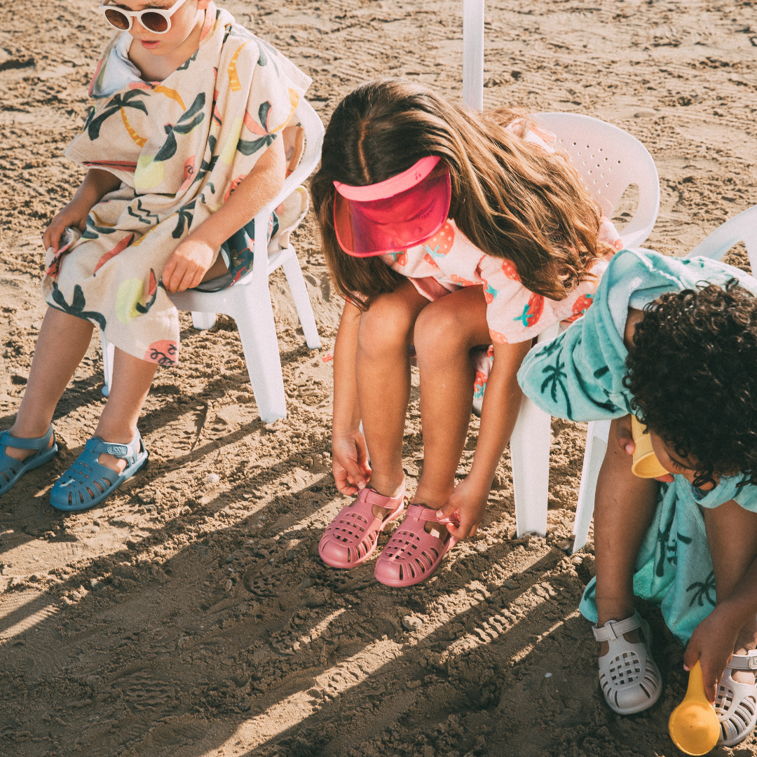 Surpreenda os seus filhos com as sandálias de praia mais coloridas desta temporada.