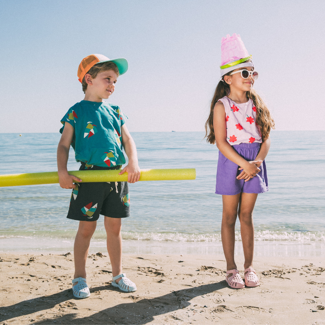 Surpreenda os seus filhos com as sandálias de praia mais coloridas desta temporada.