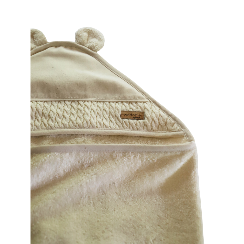 A toalha de banho para bebés meninos e meninas é produzida em tecido felpo pérola, numa mistura de algodão e poliéster suave. A toalha de banho é superabsorvente e com um tamanho grande que permitirá envolver o seu bebé, secando-o rapidamente.