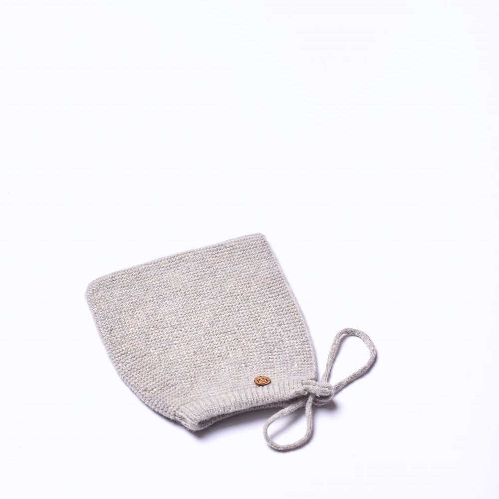 Touca tricotada em malha suave de lã merino, ideal para bebés meninos e meninas. A touca SNOWFLAKE aperta com as fitas por baixo do queixo do bebé.
