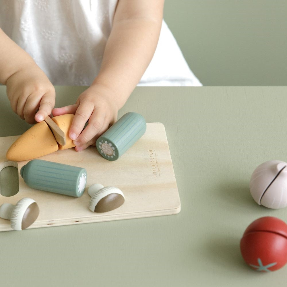 Comer vegetais todos os dias é super importante! Por isso os filhotes vão adorar imitar na confecção de uma refeição e diga-se que é muito mais divertido se o fizerem juntos. Corta os vegetais com a faca de madeira e a tábua de corte que vêm incluídas e torna-se um chef de primeira!